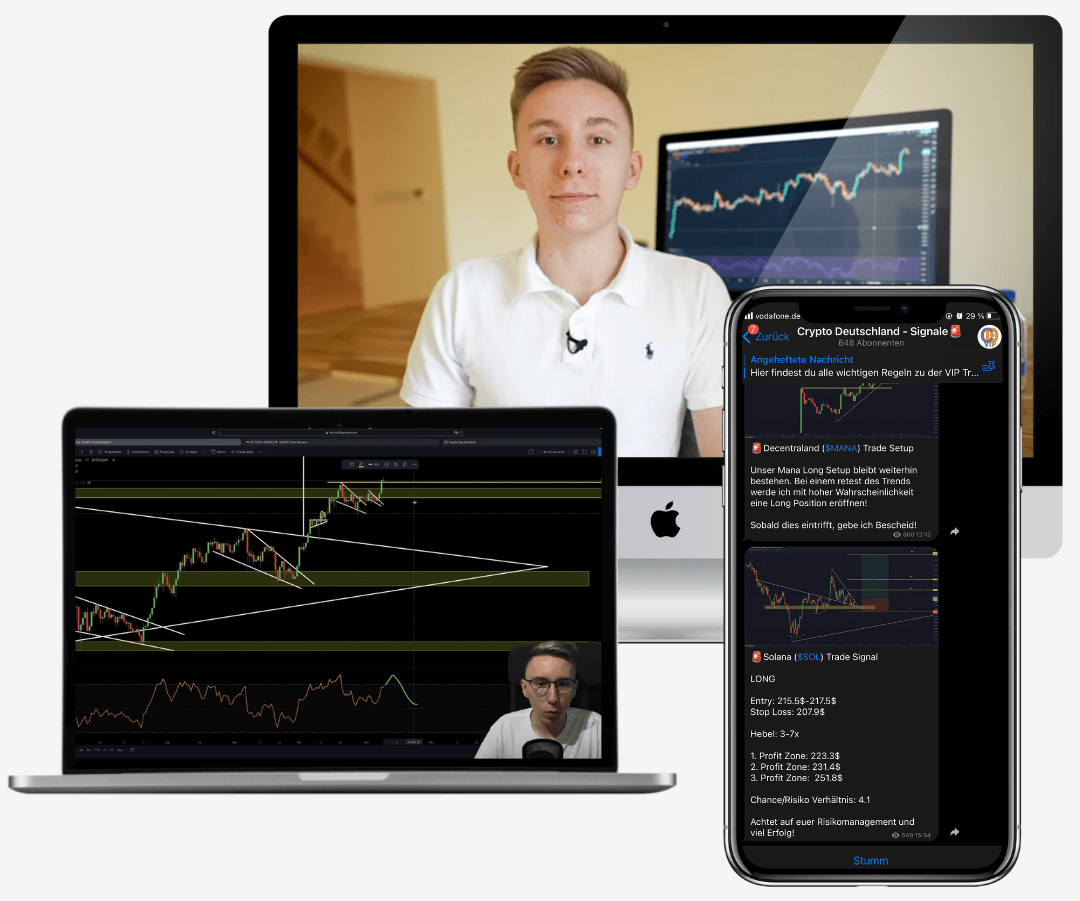 Damit du dir die jahrelange Mühe (verbunden mit hunderten Fehlern, zehntausenden Euro Lehrgeld und unzähligen schlaflosen Nächten) erspart bleibt, bieten wir für eine limitierte Anzahl von Kunden eine langfristige Zusammenarbeit an. In dieser Zusammenarbeit werden wir dir Schritt-für-Schritt alle wichtigen Details zeigen, damit du zukünftig eigenständig überdurchschnittliche Renditen mit deinen Krypto-Investitionen erzielen kannst.
